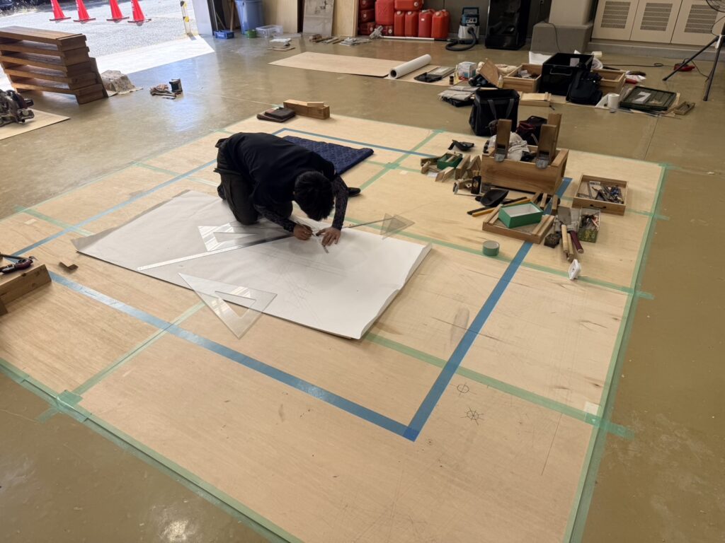 このような緻密な作業から始まり、木材に墨付けを施し、加工し組立て完成させるまでを、二日間という限られた時間の中で行います。
