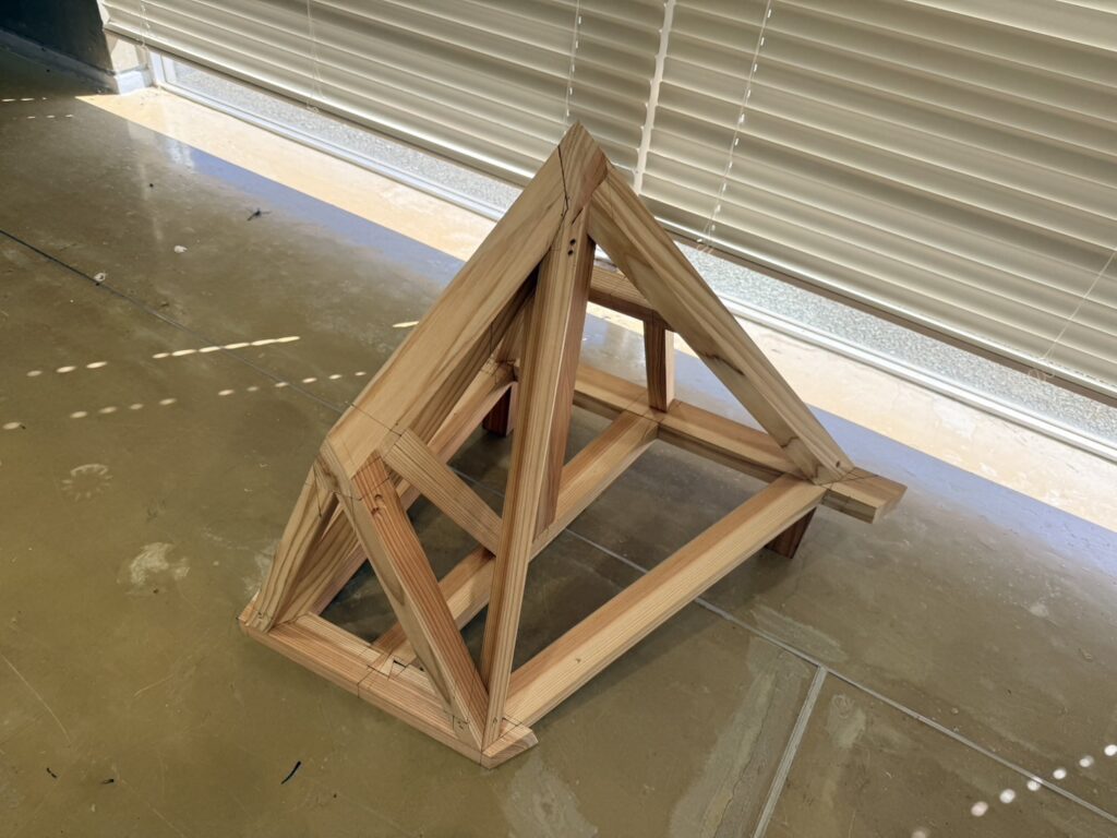 建築大工部門は、課題図に示された複雑な形状の小屋組みを、素早く・正確に・美しくつくり上げる競技です。