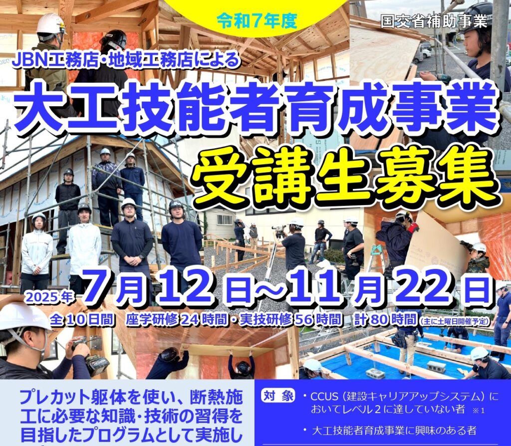 一般社団法人山形県優良住宅協会・JBN 山形が、山形県内若手大工の技術向上とキャリアアップを目的とし、国土交通省の補助事業として行っている大工技能者育成事業【大工育成塾】。