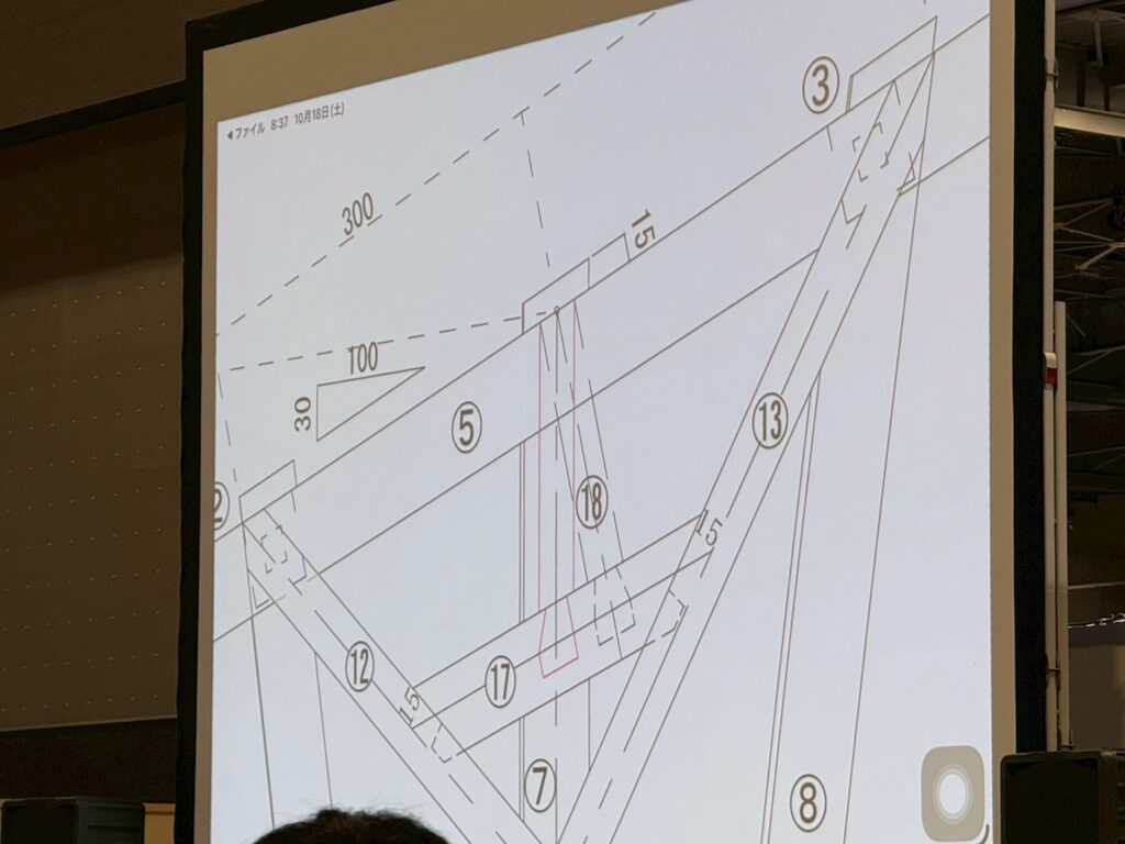 文章で課題が出され、それを原寸図におこし、墨付け・加工・組み立てを行っていきます。